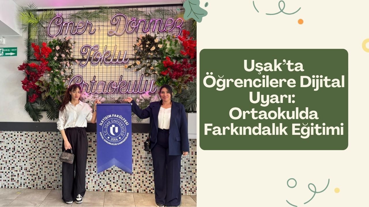 Uşak Üniversitesi İletişim Fakültesi Halkla İlişkiler ve Reklamcılık Bölümü kapsamında yürütülen Sosyal Sorumluluk Kampanyaları dersi çerçevesinde, öğrenciler Elif Şahin ve Gülsüm Arslan tarafından anlamlı bir farkındalık etkinliği gerçekleştirildi. Bugün Uşak Ömer Toklu Ortaokulu’nda düzenlenen etkinlikte, 7. sınıf öğrencilerine yönelik dijital dünyaya dair bilinç kazandırmayı amaçlayan kapsamlı bir eğitim programı sunuldu. Program kapsamında “dijital oyun analizi”, “dijital dolandırıcılık farkındalığı” ve “görsel okuryazarlık” başlıkları ele alındı.