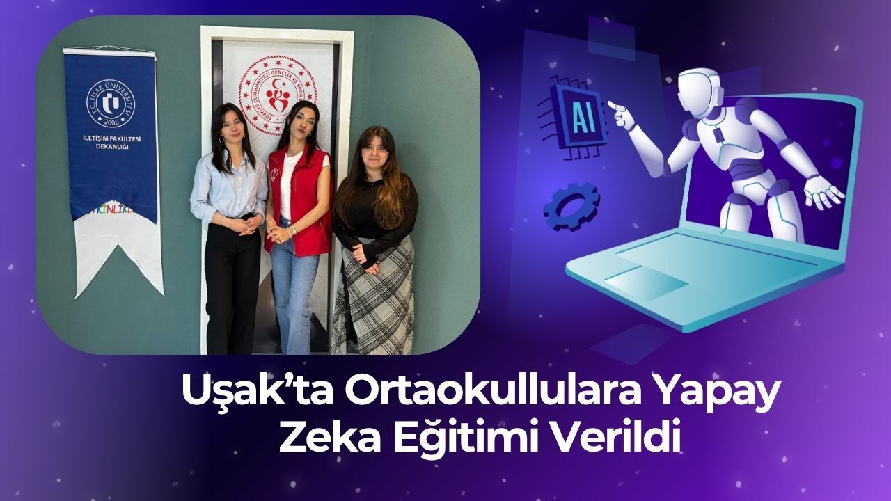 Uşak Üniversitesi Yeni Medya ve İletişim Bölümü öğrencileri Melike Sakin ve Nuran Şahin tarafından, Uşak Gençlik ve Spor İl Müdürlüğü’nün katkılarıyla “Yapay Zeka Dost mu Düşman mı?” başlıklı bir bilgilendirme sunumu gerçekleştirildi. 15 Nisan 2025 tarihinde Kudret Erdem Ortaokulu’nda düzenlenen etkinlikte, ortaokul öğrencilerine yapay zeka teknolojileri kapsamlı bir şekilde tanıtıldı.