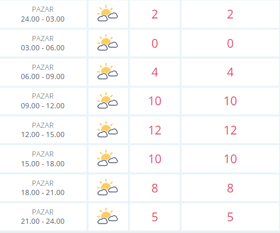 Günün ilerleyen saatlerinde ise hava kademeli olarak ısınacak. 09.00’dan itibaren yükselişe geçen sıcaklık, 12.00–15.00 aralığında 12 dereceye kadar ulaşacak. Parçalı bulutlu gökyüzüyle birlikte günün en ılık zaman dilimi bu saatler olacak.