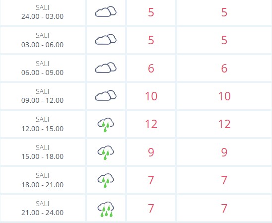 Saat 09.00’dan sonra hava sıcaklığı kademeli olarak artarak 10 dereceye ulaşacak. Günün en yüksek sıcaklığı ise 12.00–15.00 aralığında 12 derece olarak ölçülecek. Ancak tam bu saat diliminde kent merkezinde sağanak yağışın başlaması öngörülüyor.