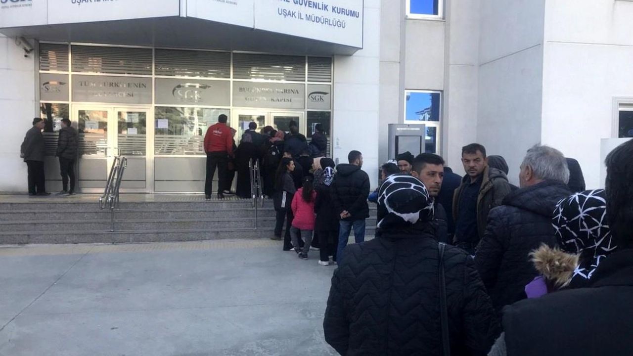 UŞAK'TA SGK ÖNÜNDE METRELERCE EYT KUYRUĞU OLUŞTU