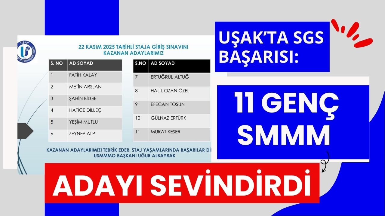Serbest Muhasebeci Mali Müşavirliğe giden yolda önemli bir eşik olan Staja Giriş Sınavı’nda (SGS) Uşak’tan 11 adayın başarılı olması, meslek camiasında memnuniyetle karşılandı. Gençlerin gösterdiği performans, nitelikli insan kaynağının sürekliliğine işaret etti. Uşak Serbest Muhasebeci Mali Müşavirler Odası (USMMMO) Başkanı Uğur Albayrak, başarıyı tebrik ederek, staj sürecinin mesleki olgunlaşma açısından kritik olduğunu vurguladı. Albayrak, adaylara staj yaşamlarında başarı, özel hayatlarında sağlık ve mutluluk dileklerini iletti.