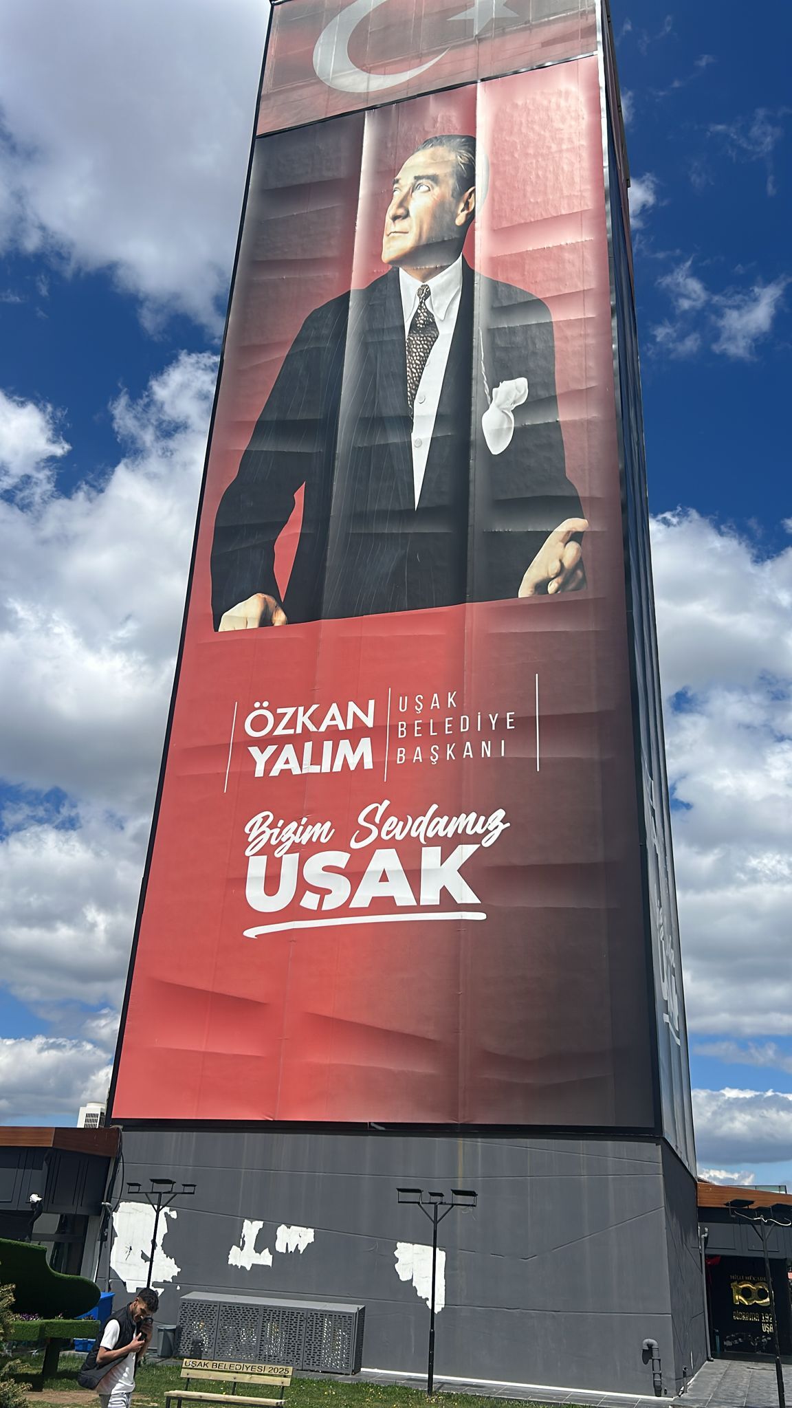 Uşak’ta şehir siluetinin en dikkat çeken noktalarından biri olan Atapark Ata Kule’de yer alan Özkan Yalım imzalı reklamlar, kentte tepkilerin odağı haline geldi. Tutuklu bulunan eski belediye başkanının adının hala en görünür yapıda yer alması, “Bu yazı neden hala duruyor?” sorusunu gündeme taşıdı.
