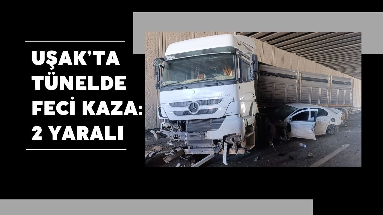 Uşak-Ankara Karayolu’nda bulunan tünelde meydana gelen trafik kazasında iki kişi yaralandı. Edinilen bilgilere göre, Afyonkarahisar istikametine seyir halinde olan tır ile aynı yönde ilerleyen otomobil çarpıştı. İddiaya göre tünel içerisinde tırın kör noktasında ilerleyen ve kadın sürücünün kullandığı otomobile tır çarptı. Çarpmanın şiddetiyle savrulan otomobil tırın altına girdi. Kazayı gören diğer sürücüler durumu 112 Acil Çağrı Merkezi’ne bildirdi.