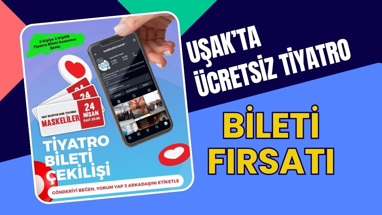 Uşak Belediyesi Kültür ve Sosyal İşler Müdürlüğü, kentte kültür ve sanat etkinliklerine ilgiyi artırmak amacıyla dikkat çeken bir kampanya başlattı. Tiyatro severler için hazırlanan etkinlikte, katılımcılara ücretsiz bilet kazanma fırsatı sunuluyor.