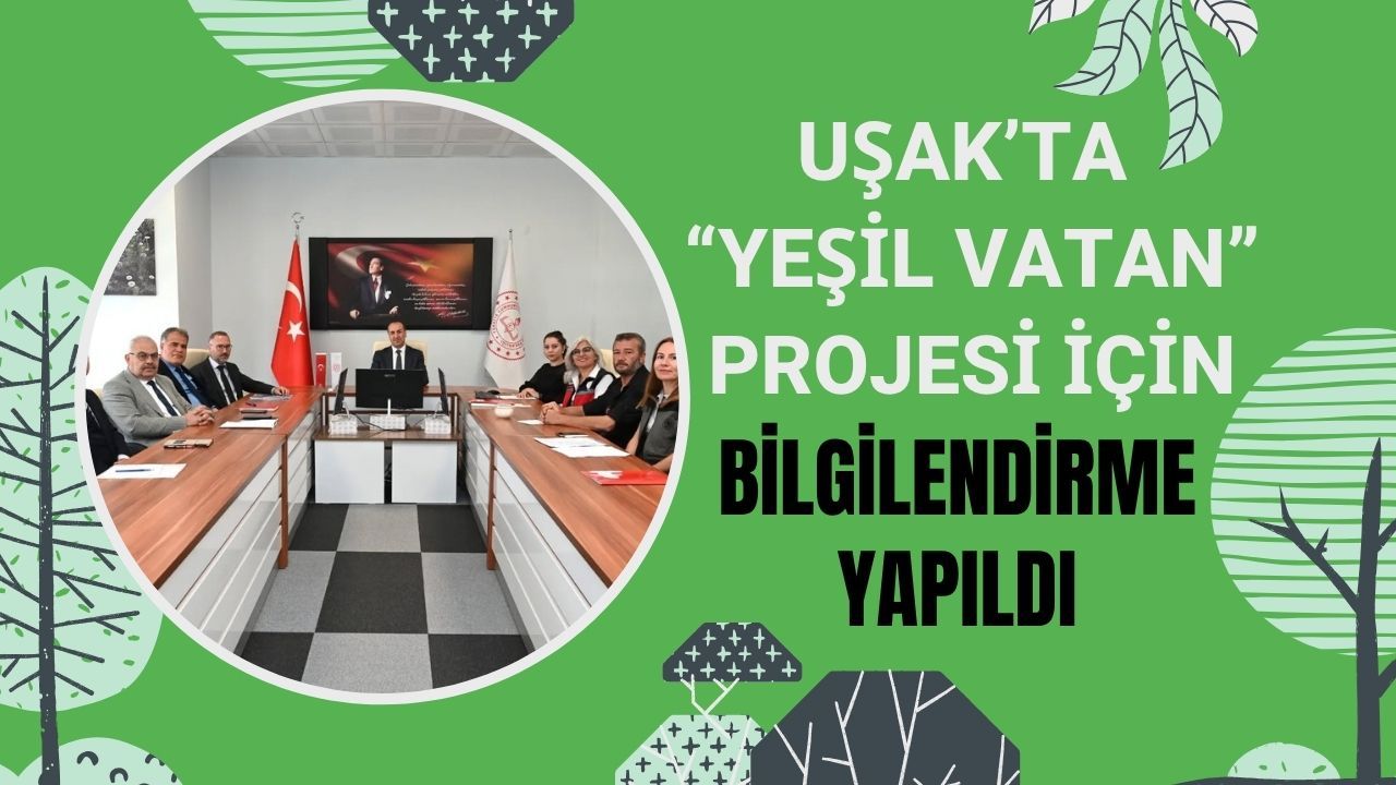 Uşak İl Milli Eğitim Müdürlüğü, doğa sevgisini ve çevre bilincini eğitimle buluşturmak amacıyla “Yeşil Vatan – Benim Okulum Geleceğe Çare” Projesi’nin bilgilendirme toplantısını gerçekleştirdi. İl Milli Eğitim Müdürü Halil Yücel başkanlığında yapılan toplantıya, Müdür Yardımcısı Ali Emir, Şube Müdürleri Ahmet Aydın ve Mehmet Aksoy, Uşak Orman İşletme Şefi İlknur Gök ile ilgili birim çalışanları katıldı. Toplantıda, yereldeki paydaşlarla birlikte yürütülecek çalışmaların önemine değinildi. Temalara uygun kurumlarla iş birliği yapılması, Tarım ve Orman Bakanlığı ile imzalanan “Köklerden Geleceğe Nefes Protokolü” çerçevesinde faaliyetlerin hızlandırılması kararlaştırıldı.