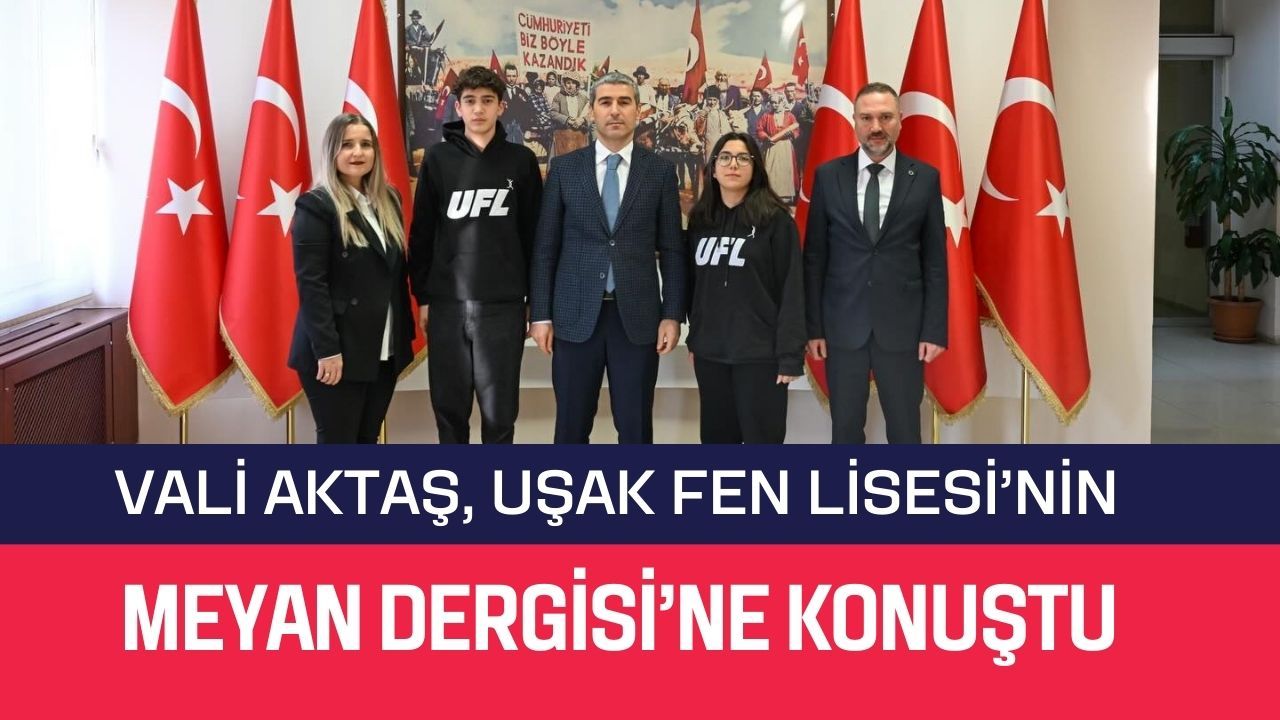 Uşak Fen Lisesi öğrencileri tarafından hazırlanan okul dergisi Meyan Dergisi, son sayısında önemli bir konuğu ağırladı. Derginin yeni sayısında Naci Aktaş ile gerçekleştirilen söyleşi yer aldı. Gerçekleştirilen röportajda Vali Aktaş; eğitim politikaları, gençlerin akademik gelişimi, sosyal ve kültürel desteklerin önemi ile Uşak’ın geleceğine yönelik kamu yatırımları hakkında değerlendirmelerde bulundu. Gençliğe yapılan yatırımın, şehirlerin yarınlarını şekillendiren en temel unsur olduğuna dikkat çekti.