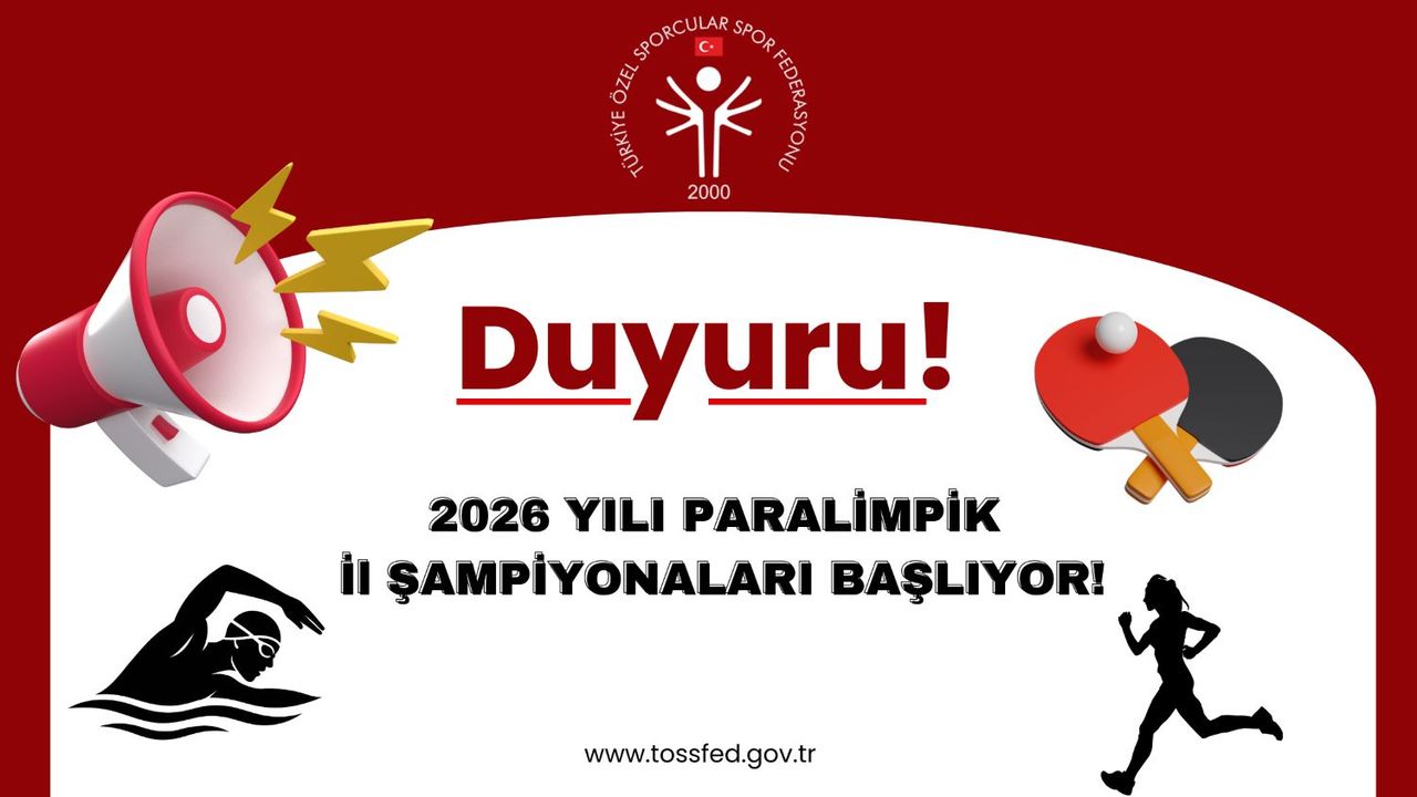 Türkiye Özel Sporcular Spor Federasyonu, 2026 yılı paralimpik il şampiyonalarına ilişkin takvim ve uygulama esaslarını kamuoyuyla paylaştı. Federasyon tarafından yapılan açıklamada, Atletizm, Masa Tenisi ve Yüzme branşlarında düzenlenecek İl Şampiyonalarının reglamanlarının teknik kurullar tarafından hazırlanarak yürürlüğe girdiği bildirildi. Açıklamaya göre il şampiyonaları, 9 Şubat ile 6 Nisan 2026 tarihleri arasında Türkiye genelindeki 81 ilde gerçekleştirilecek. Müsabakalar sonunda elde edilen sonuçların, en geç 15 Nisan 2026 tarihine kadar Gençlik ve Spor İl Müdürlükleri aracılığıyla federasyona resmî yazı ile iletilmesi gerektiği belirtildi.