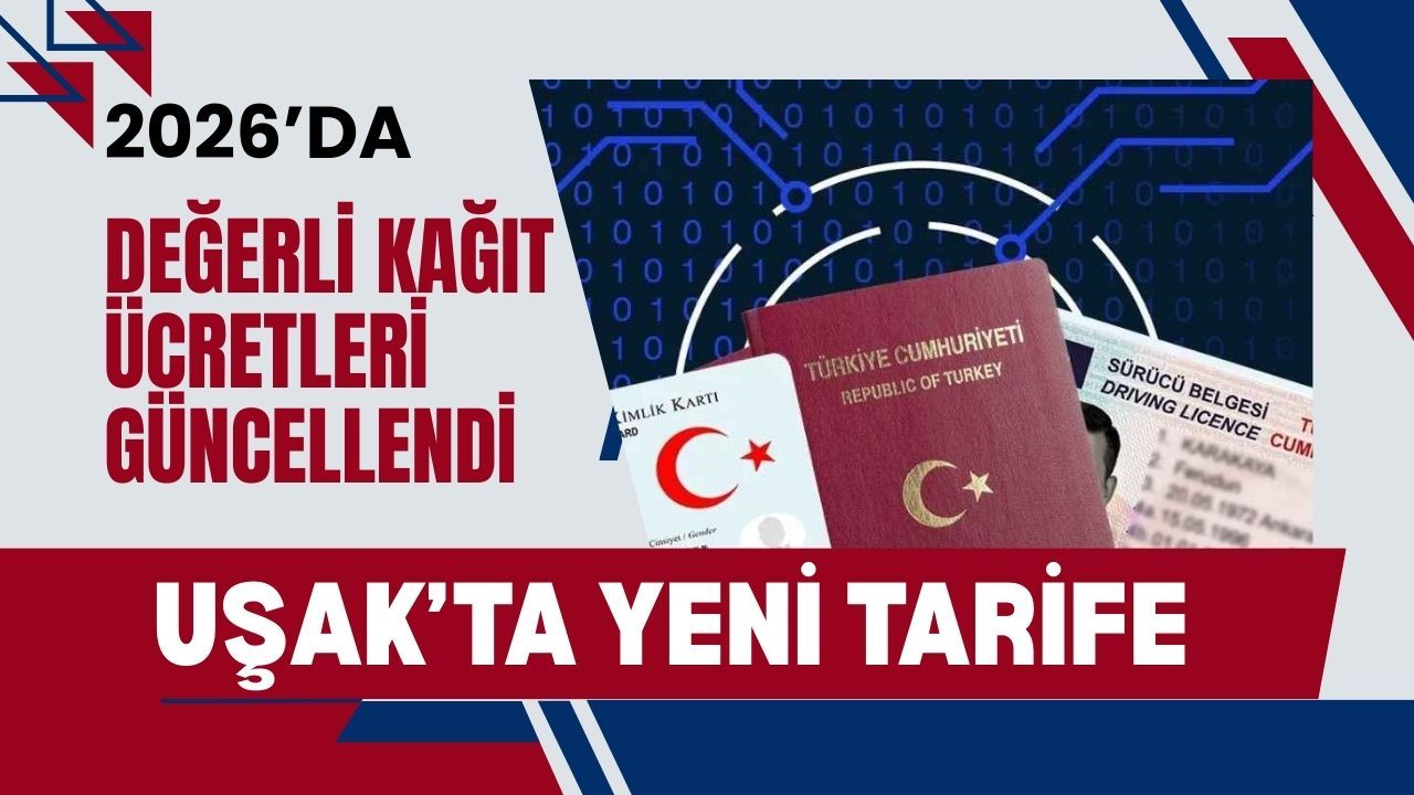 Yeni yılla birlikte kamu işlemlerinde kullanılan değerli kağıtların satış bedelleri yeniden belirlendi. Açıklanan tarifeyle, vatandaşların en sık başvurduğu belgelerde dikkat çeken artışlar görüldü. Uşak’ta nüfus müdürlükleri, noterler ve ilgili kurumlarda işlemler bu bedeller üzerinden yapılacak.