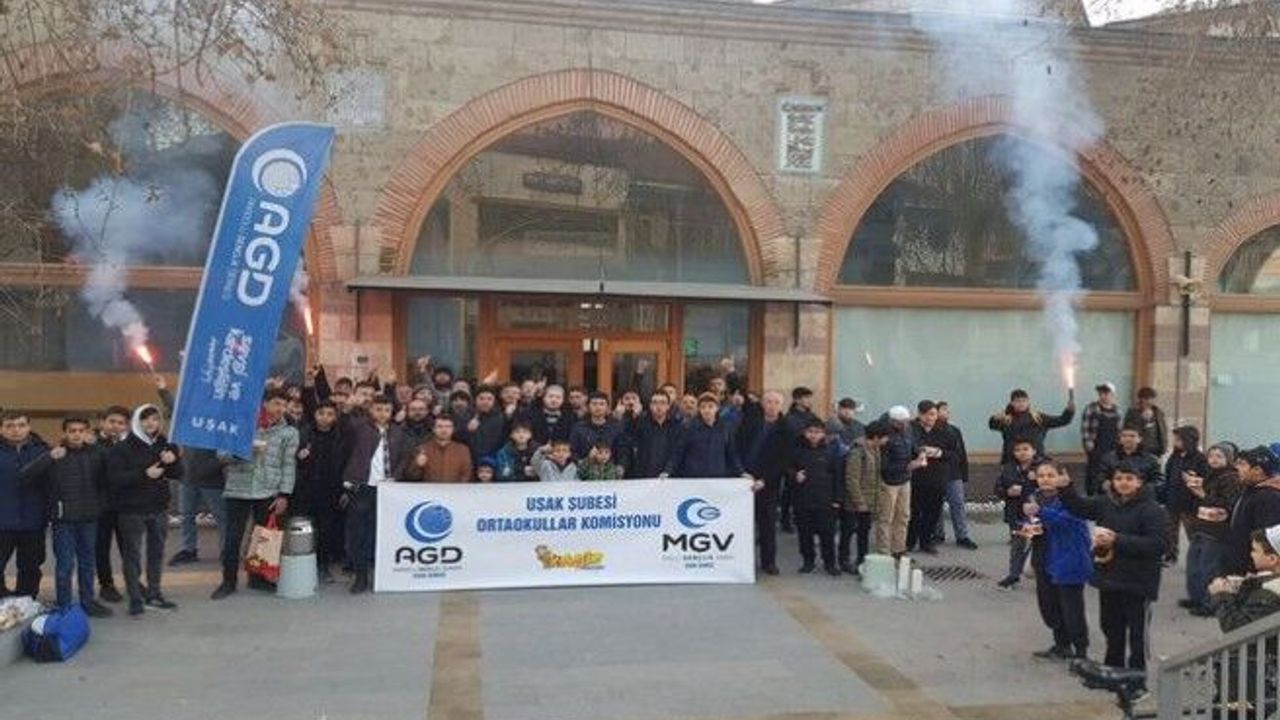 Anadolu Gençlik Derneği Uşak orta öğretim komisyonunca tüm yurtta olduğu gibi sabah namazı çıkışında ulu cami de İsveç in başkentindeki Kutsal kitabımız Kuranı kerim in yakılmasına karşın basın açıklaması yaparak şiddetle kınayarak protesto ettiler.