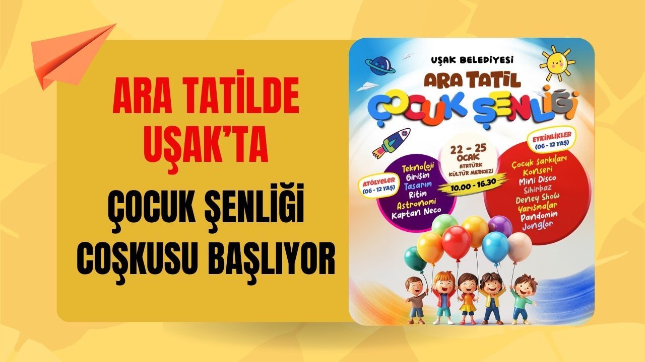 10.00–16.30 saatleri arasında gerçekleştirilecek şenlik, 6–12 yaş aralığındaki tüm çocuklara ücretsiz olarak kapılarını açacak. Ailelerin de yakından takip edebileceği etkinlikler, ara tatili çocuklar için unutulmaz bir anıya dönüştürmeyi hedefliyor. Uşak Belediyesi yetkilileri, çocukların neşesiyle şehrin enerjisinin artacağını vurgularken, tüm aileleri bu renkli buluşmaya davet ediyor. Ara tatilde Uşak’ta kahkaha, öğrenme ve keşif aynı çatı altında buluşacak.