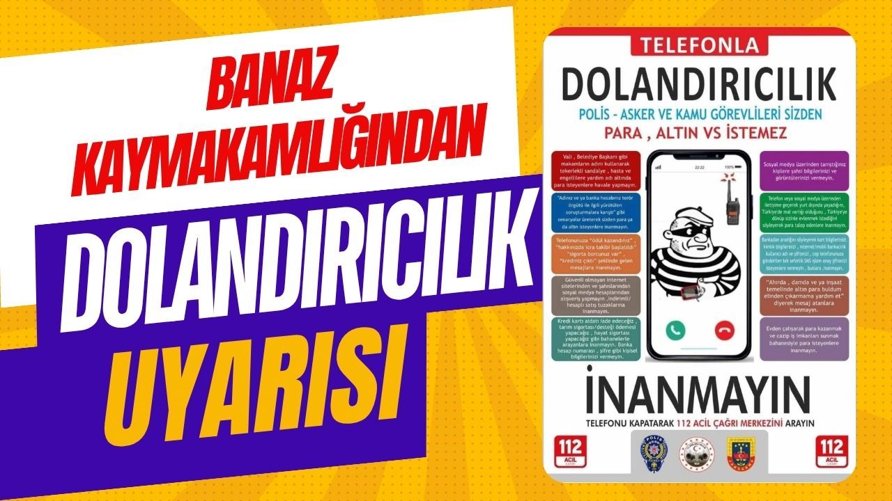 Banaz Kaymakamlığı, son dönemlerde artan telefon ve sanal dolandırıcılık girişimlerine karşı vatandaşları bilgilendiren bir açıklama yaptı. Yapılan uyarıda, polis, asker ya da kamu görevlilerinin hiçbir şekilde vatandaştan para, altın veya değerli eşya istemeyeceğinin altı çizildi. Banaz Kaymakamlığının sosyal medya hesabından yapılan açıklamada, “Vali, belediye başkanı ya da farklı makamların adını kullanarak yardım adı altında para isteyenlere kesinlikle inanmayın. ‘Adınız terör soruşturmasına karıştı’, ‘hesabınız incelemede’, ‘ödül kazandınız’ gibi bahanelerle sizden bilgi ya da para talep edenlere itibar etmeyin” denildi.