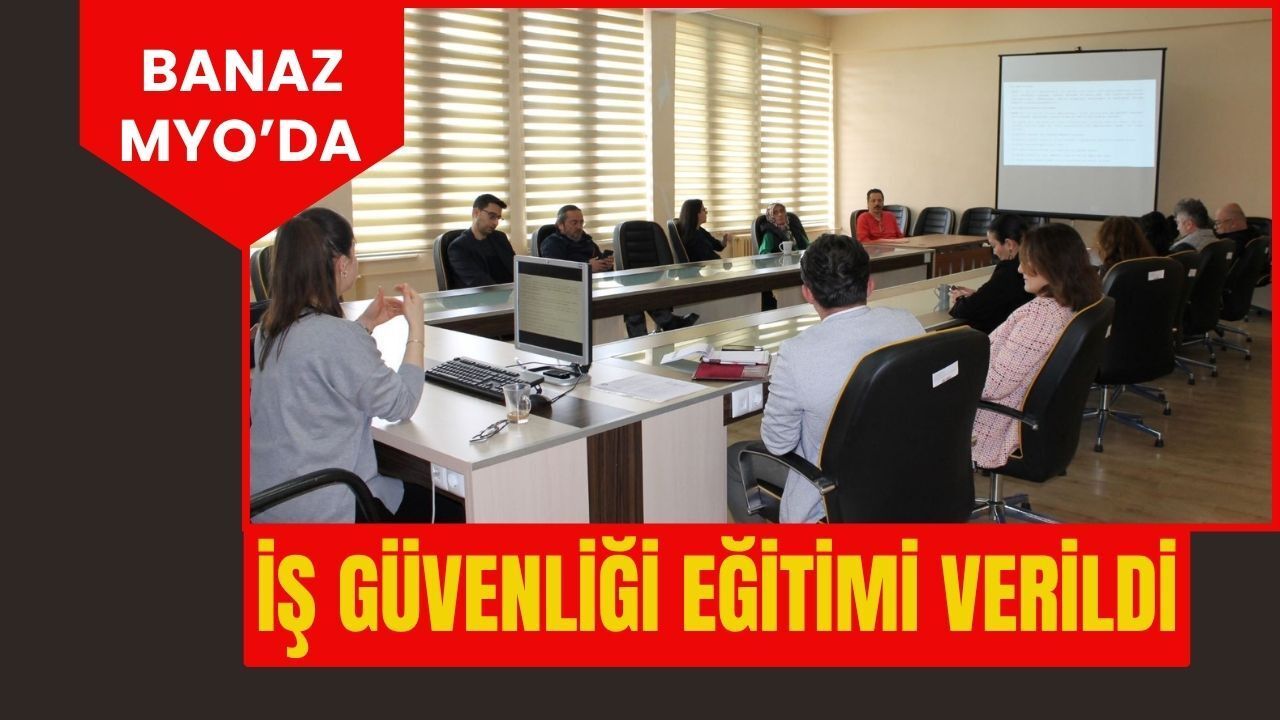 Uşak Üniversitesi Banaz Meslek Yüksekokulu’nda akademik kurul toplantısı kapsamında iş sağlığı ve güvenliği eğitimi düzenlendi. Eğitim programı, çalışma hayatında güvenliğin artırılması ve olası risklerin önlenmesine yönelik önemli başlıkları içerdi. Eğitim, İş Sağlığı ve Güvenliği Uzmanı Aslı Kaptanoğlu tarafından gerçekleştirildi. Programda katılımcılara, iş kazalarının önlenmesi, risklerin doğru analiz edilmesi ve güvenli çalışma yöntemlerinin uygulanması konularında kapsamlı bilgiler aktarıldı.