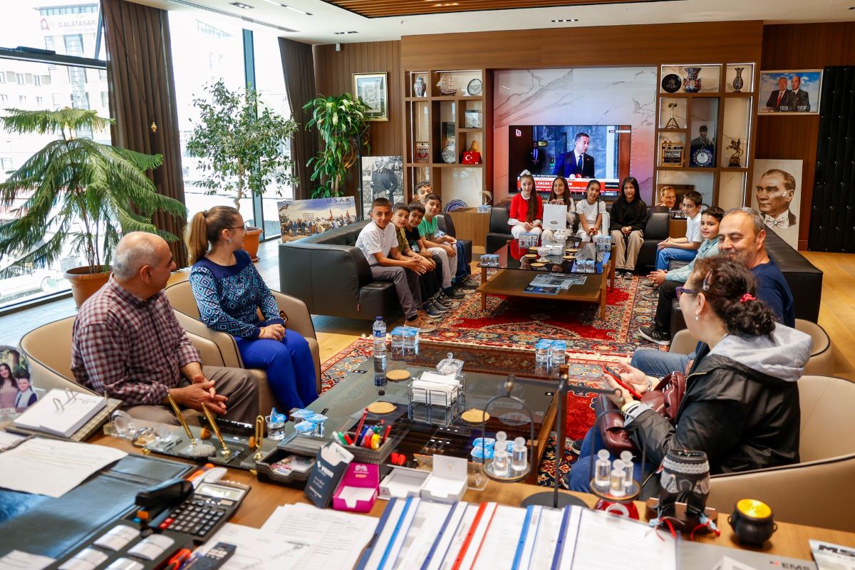 Uşak Belediye Başkanı Özkan Yalım, şehrin geleceği olan çocuklarla buluşmaya devam ediyor. Bu kapsamda, Muzaffer Mert İlkokulu öğrencileri, öğretmenleri eşliğinde Uşak Belediye Başkanı Yalım’ı makamında ziyaret etti. Belediye binasında gerçekleştirilen ziyarette, öğrenciler hem yerel yönetim hakkında bilgi aldı hem de belediyecilik hizmetlerine dair merak ettikleri soruları Başkan Yalım’a yöneltti. Başkan Yalım, çocukların sorularını samimiyetle yanıtladı, belediyenin yürüttüğü çalışmalarla ilgili örnekler vererek minik ziyaretçilere ilham verdi.