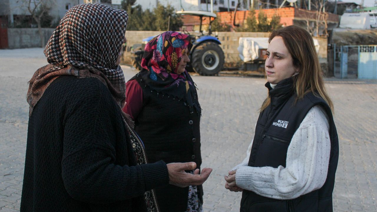 UN Women deprem bölgesindeki kadınların, kız çocuklarının ve onların ailelerinin ihtiyaçlarını karşılamak için kamu kurumları, sivil toplum kuruluşları, diğer Birleşmiş Milletler ajansları ve sahadaki diğer ortaklarla birlikte çalışıyor. Kadınların ve kız çocuklarının afet koşullarıyla başa çıkmalarına yardımcı olan temel malzemelerin yanı sıra kadına yönelik şiddet acil destek hatları ve haklarına ilişkin önemli bilgiler UN Women tarafından paylaşılıyor.