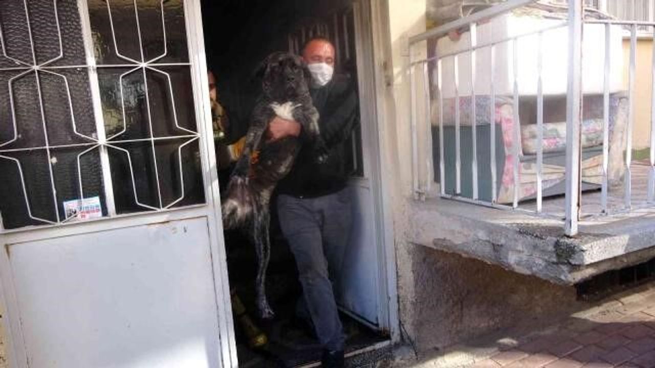 Uşak'ta bir ikamettin bodrum katında çıkan yangının ortasında kalan 'Linda' köpek için ekipler seferber oldu. Yangından kurtarıldıktan sonra itfaiye ekipleri köpeğe hava maskesi takarken polis ekipleri ise köpekle yakından ilgilendi.