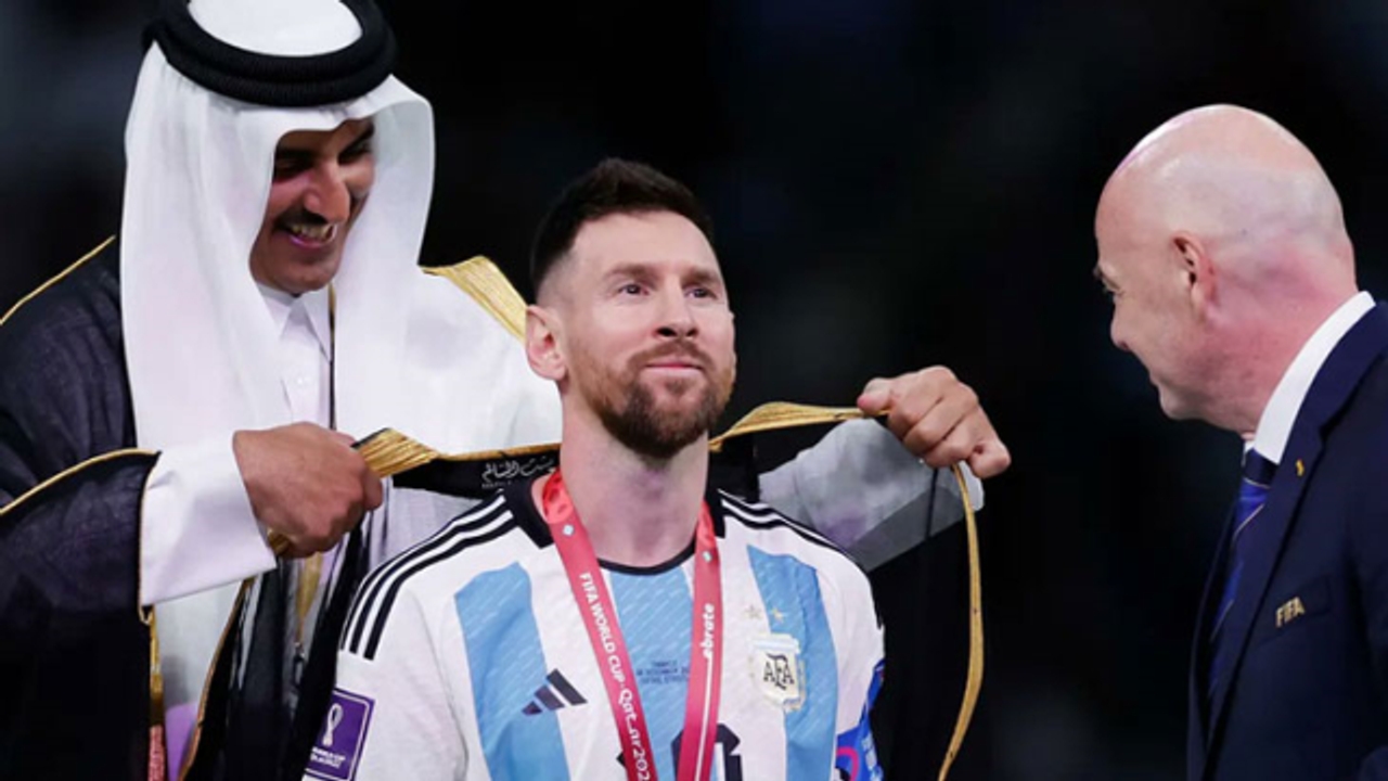Katar'daki Dünya Kupası'nda Messi'ye 'bişt' giydirilen an