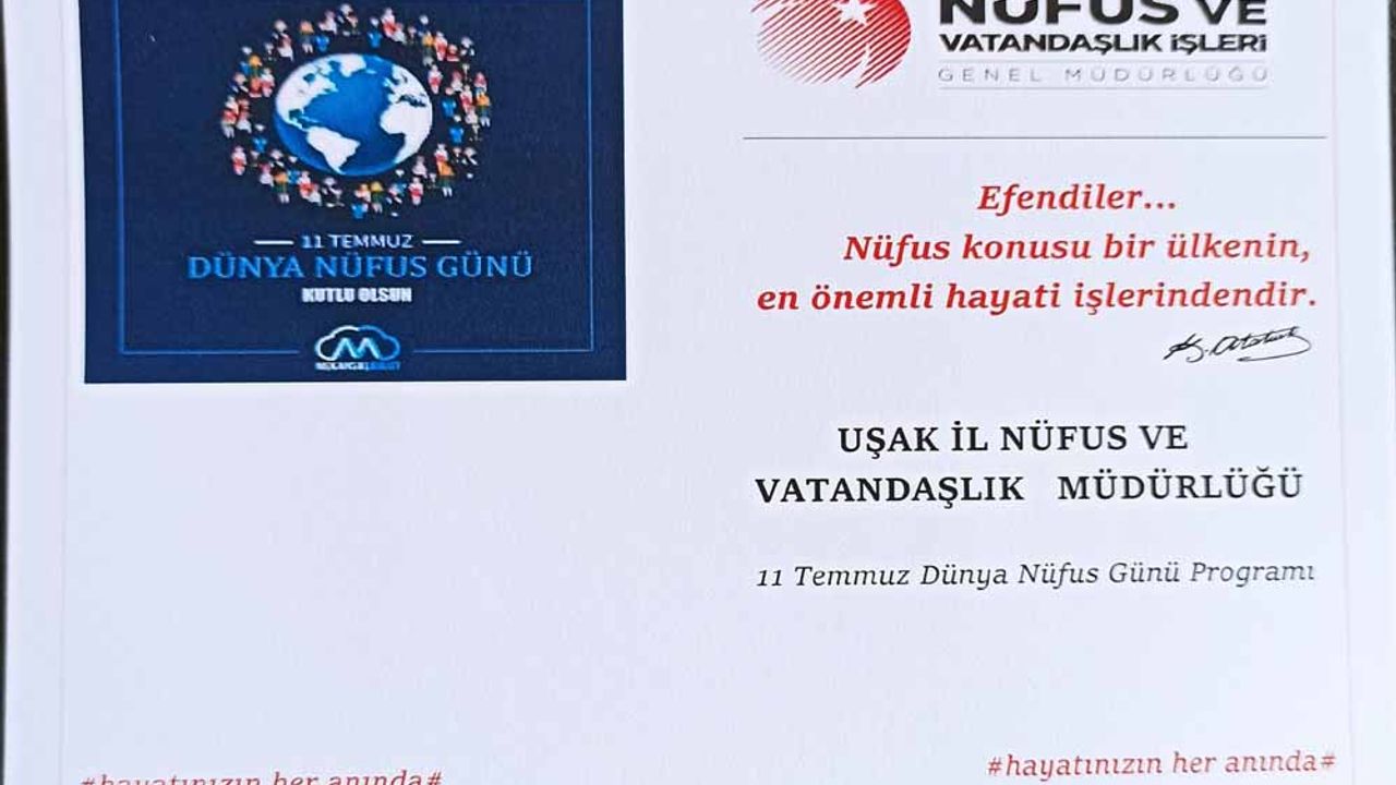 Uşak Nüfus ve Vatandaşlık Müdürlüğü tarafından ilimizde bu anlamlı gün için bir etkinlik düzenlendi. Uşak Nüfus ve Vatandaşlık Müdürü Huriye Akyol proğram hakkında şunları dedi..