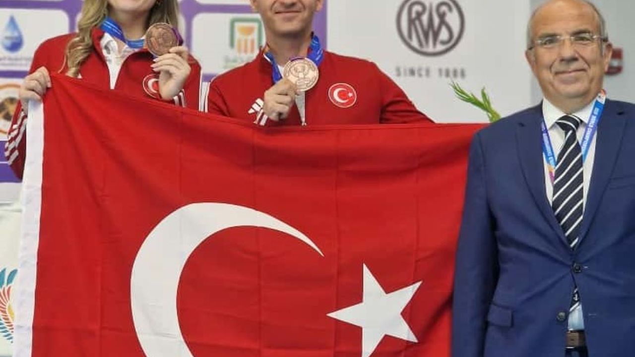 Milli sporcularımız Damla Köse ve Mert Nalbant, 6–18 Kasım 2025 tarihleri arasında Mısır’ın Kahire kentinde düzenlenen ISSF Havalı ve Ateşli Silahlar Büyükler Dünya Şampiyonası’nda büyük bir başarıya imza attı. Ay-yıldızlı sporcular, 10 Metre Havalı Tüfek Karışık Takım kategorisinde bronz madalya kazanarak Türkiye atıcılık tarihinde bir ilki gerçekleştirdi. Damla Köse ve Mert Nalbant, dünya çapında en iyi sporcuların yarıştığı şampiyonada sergiledikleri istikrarlı performansla adlarını tarihe yazdırdı. Bu sonuç, Türkiye’nin ISSF Dünya Şampiyonaları tarihindeki ilk karışık takım madalyası olarak kayıtlara geçti. Federasyon yetkilileri, bu başarıyla Türk atıcılığının uluslararası alanda yükselişinin tescillendiğini belirterek sporcuları ve antrenörleri tebrik etti.