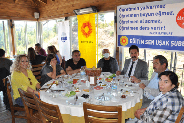 Uşak Eğitim Sen Dünya Öğretmenler Günü'nden dolayı eğitim emekçileriyle kahvaltıda bir araya geldi. Eğitim-Sen, emekli olan öğretmenlere plaket verirken yeni gelen isimlere de rozet taktı.