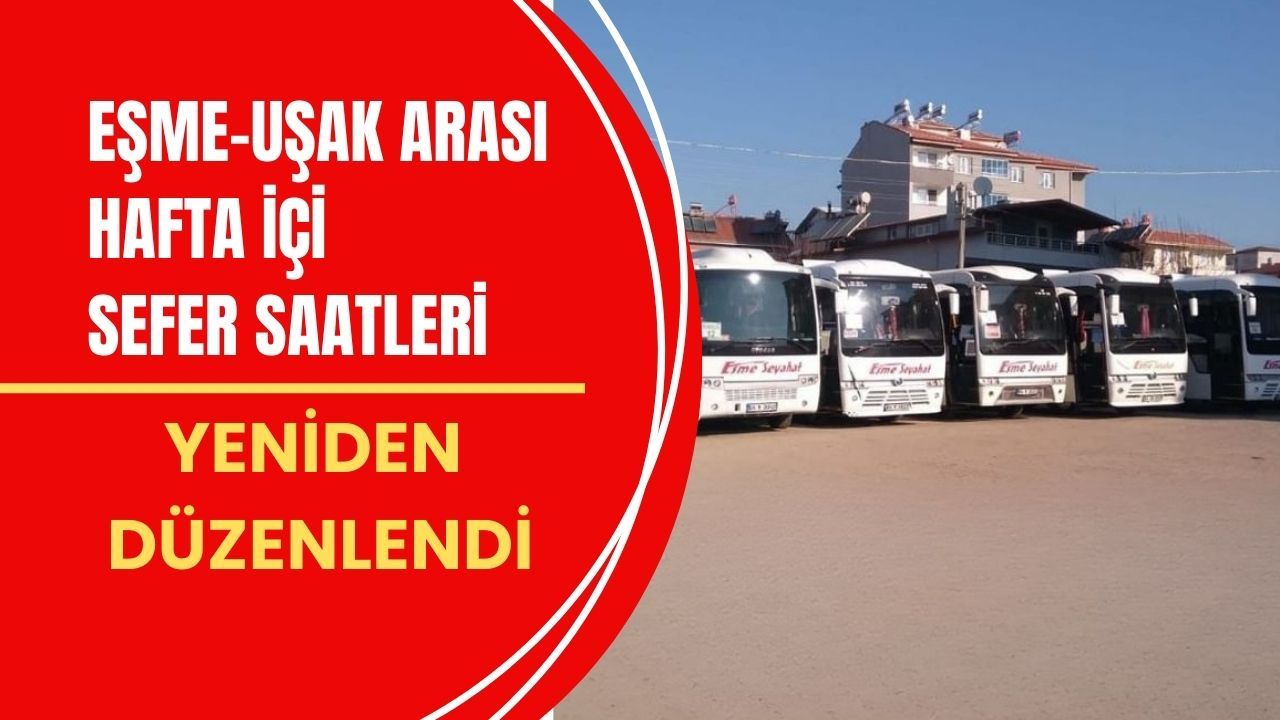 Eşme ilçesinde şehirlerarası ve ilçe bağlantılı toplu taşımacılık hizmeti sunan Eşme Seyahat, hafta içi yolcu taşımacılığında geçerli olacak yeni sefer saatlerini kamuoyuyla paylaştı. Yapılan düzenleme ile Eşme-Uşak ve Uşak-Eşme hattındaki saatler yeniden belirlendi.