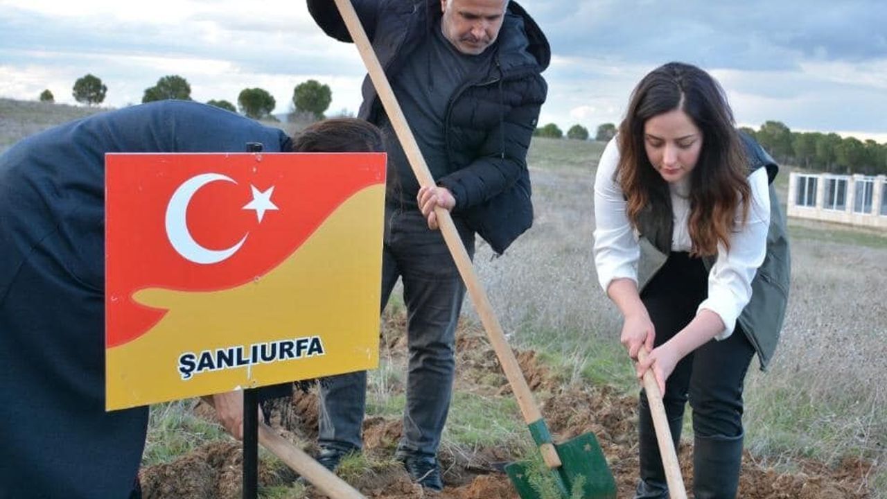 Kaymakam Selin Sarı, “Deprem bölgesinden gelen misafirlerimizle birlikte ilk fidanlarımızı diktik. Her bir şehidimizin hatırası ormanlarda, fidanlarla kök salacak. Geleceğe nefes olacak inşallah” dedi. (BERRİN BAKIRCI)