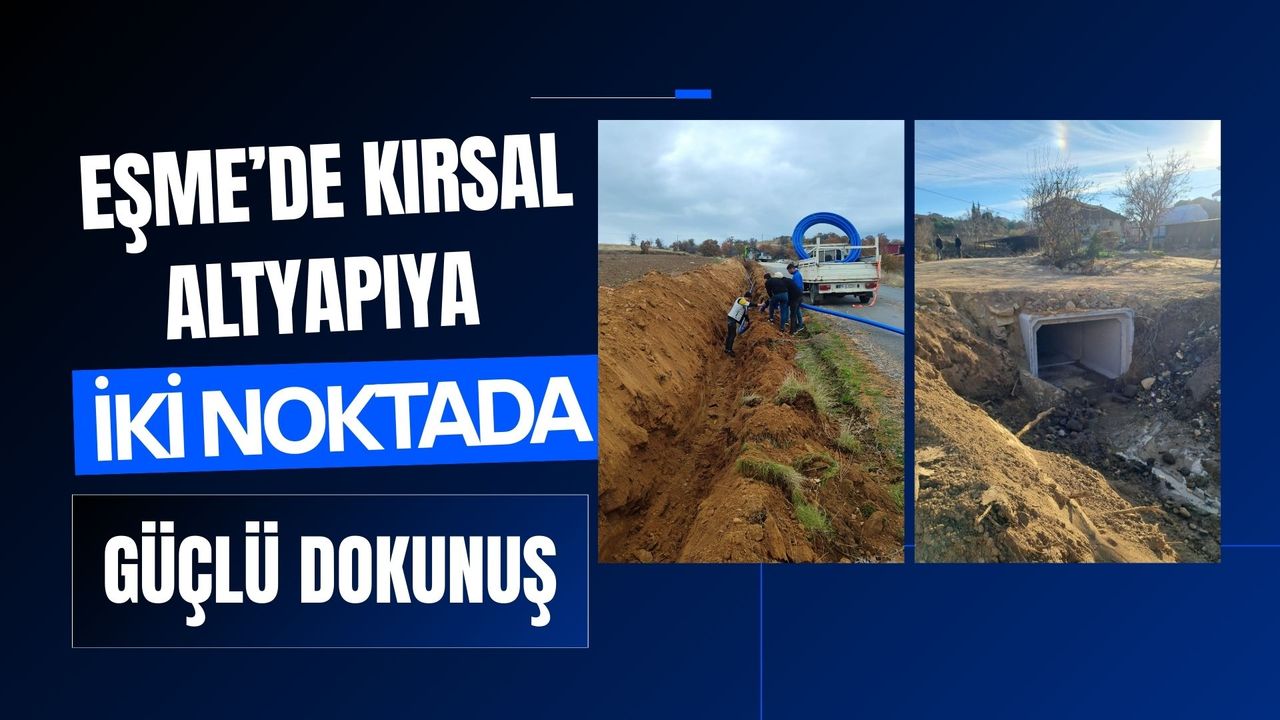 Eşme Kaymakamı Mustafa Görmüş’ün koordinasyonunda, Eşme Kaymakamlığı Köylere Hizmet Götürme Birliği tarafından kırsal altyapıyı güçlendiren iki önemli çalışma hayata geçirildi. Yapılan yatırımların, köy içi ulaşım ve temel yaşam hizmetlerinde kalıcı iyileşme sağlaması hedefleniyor. Bu kapsamda Yeşilkavak Köyü’nde köy içi yollarda kullanılmak üzere biri 24 metre uzunluğunda 1,5x2 metre, diğeri 8 metre uzunluğunda 1x1 metre ebatlarında iki menfez yerleştirildi. Menfezlerin, özellikle yağışlı dönemlerde su tahliyesini hızlandırarak yol güvenliğini artırması bekleniyor.