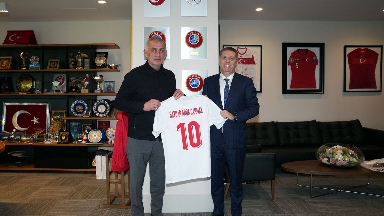 TFF Başkanı İbrahim Ethem Hacıosmanoğlu, 6 Aralık’ta gerçekleştirilen genel kurulda Gençlerbirliği Kulübü Başkanlığı’na seçilen Haydar Arda Çakmak ve yönetimini bir kez daha tebrik etti. Ziyaretin anısına Başkan Hacıosmanoğlu, Haydar Arda Çakmak’a A Millî Takım forması takdim etti. Başkan Çakmak da karşılık olarak Gençlerbirliği formasını hediye etti.