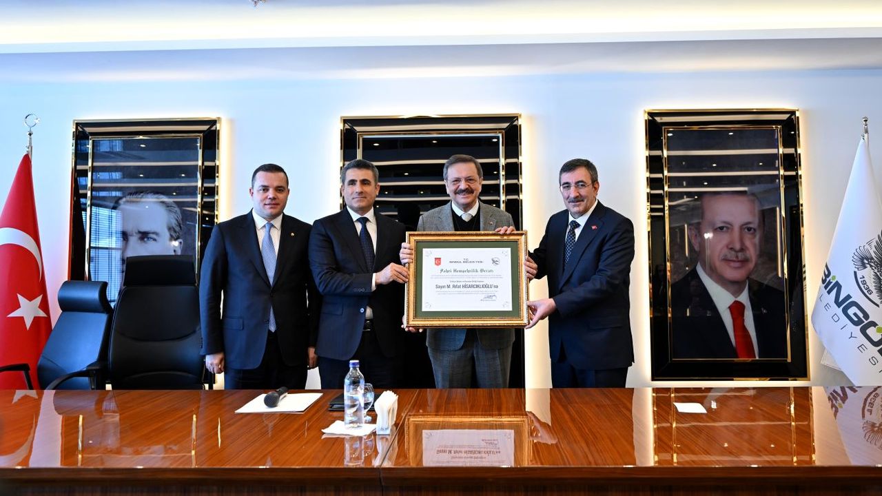 Türkiye Odalar ve Borsalar Birliği Başkanı M. Rifat Hisarcıklıoğlu, Bingöl Belediye Meclisi tarafından oy birliğiyle alınan kararla “Fahri Hemşehrilik Beratı”na layık görüldü. Berat, Cevdet Yılmaz’ın katılımıyla düzenlenen törende takdim edildi. Törende konuşan Hisarcıklıoğlu, kendisine verilen bu anlamlı unvandan büyük mutluluk ve onur duyduğunu belirterek, Bingöl’ün artık kendi memleketlerinden biri olduğunu ifade etti. Bu kararın kendisi için özel bir anlam taşıdığını vurgulayan Hisarcıklıoğlu, Bingöl ile gönül bağının daha da güçlendiğini söyledi.