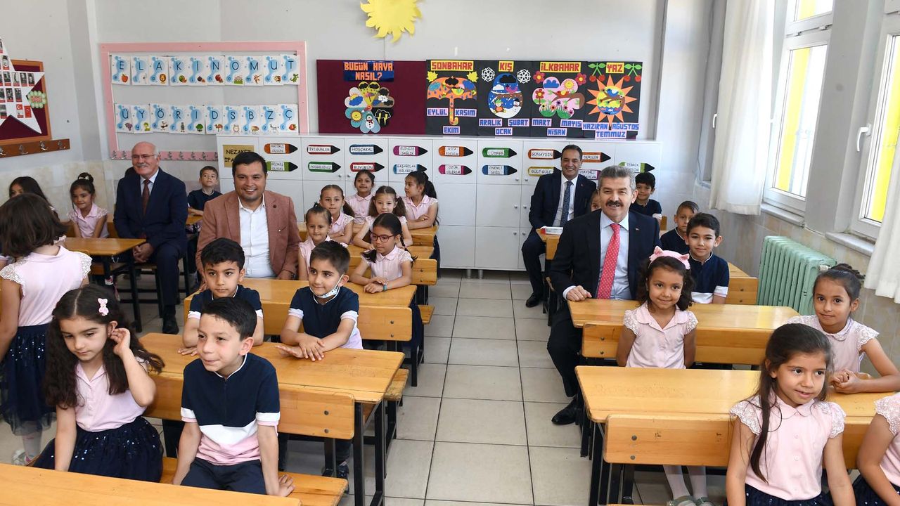 UŞAK GÜL İLKOKULU ÖĞRENCİLERİ KARNELERİNİ VALİ DR. TURAN ERGÜN'DEN ALDI