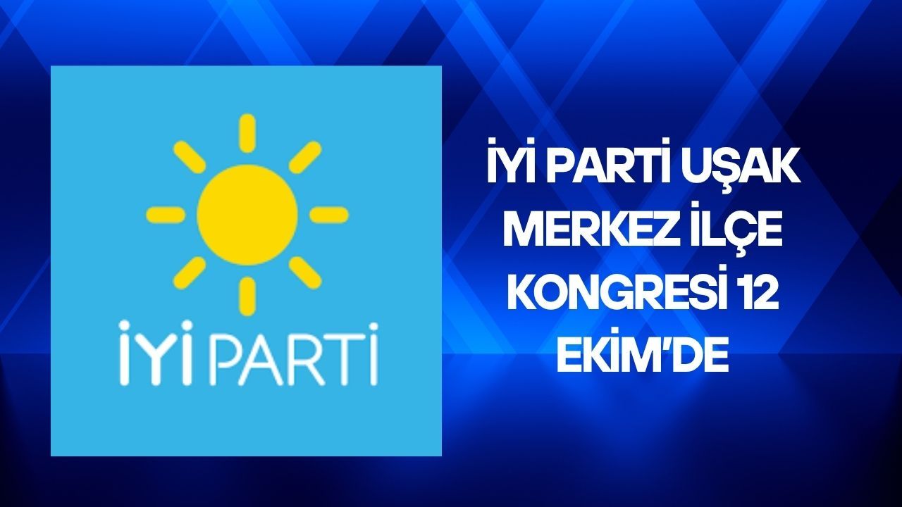 İYİ Parti Uşak Merkez İlçe Başkanlığı’nın 4. Olağan Kongresi, 12 Ekim 2025 Pazar günü Atatürk Kültür Merkezi’nde yapılacak. Saat 11.00’de başlayacak kongre, 17.00’ye kadar sürecek. Kongrede, partinin yeni ilçe başkanı ve yönetimi belirlenecek.