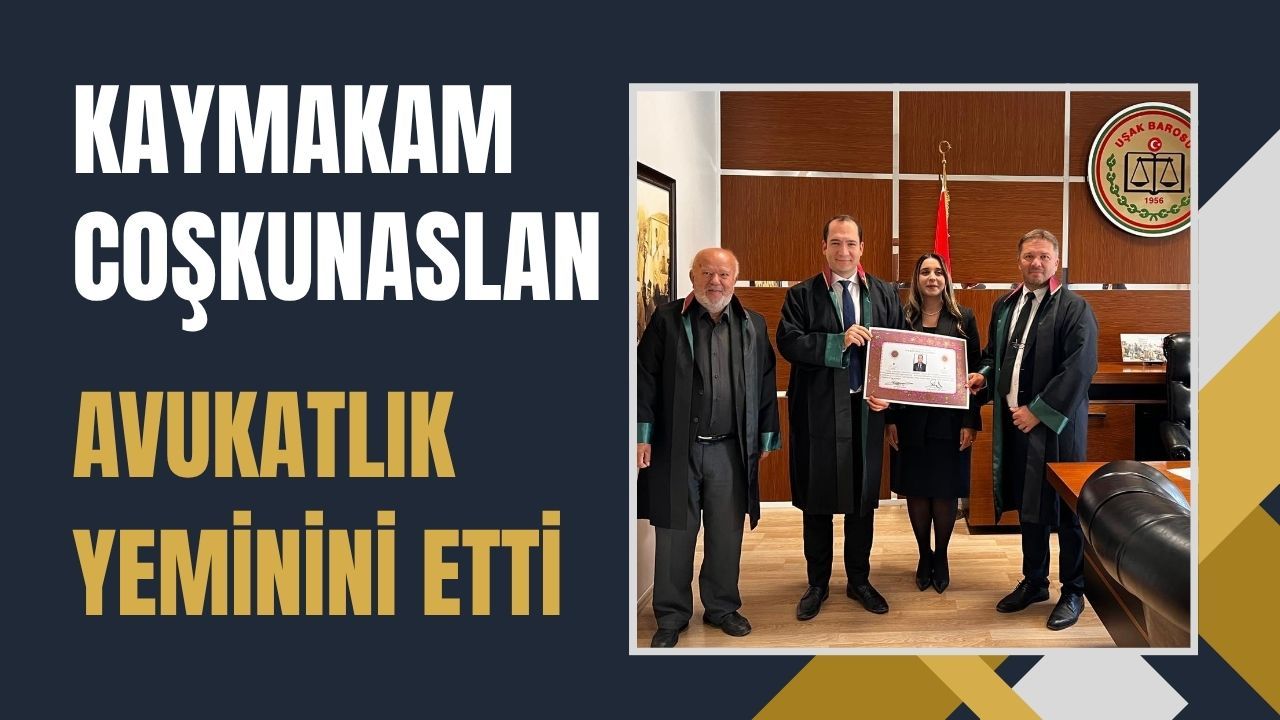 Uşak’ın Ulubey Kaymakamı İbrahim Coşkunaslan, uzun yıllara dayanan emeğinin ardından avukatlık mesleğine adım attı. Coşkunaslan, Uşak Barosu tarafından düzenlenen törende avukatlık yeminini ederek mesleğe resmen kabul edildi. Törende, Uşak Baro Başkanı Av. Özgür Boz eşliğinde yemin eden Coşkunaslan, ruhsatını da Boz’un elinden aldı. Kaymakam Coşkunaslan, bu anlamlı günün kendisi için büyük bir gurur vesilesi olduğunu belirterek, “Uzun yılların emeğini, alın terini ve birikimini taçlandırdığım bugün, Avukatlık camiasına kabul edilmenin mutluluğunu yaşıyorum” dedi.