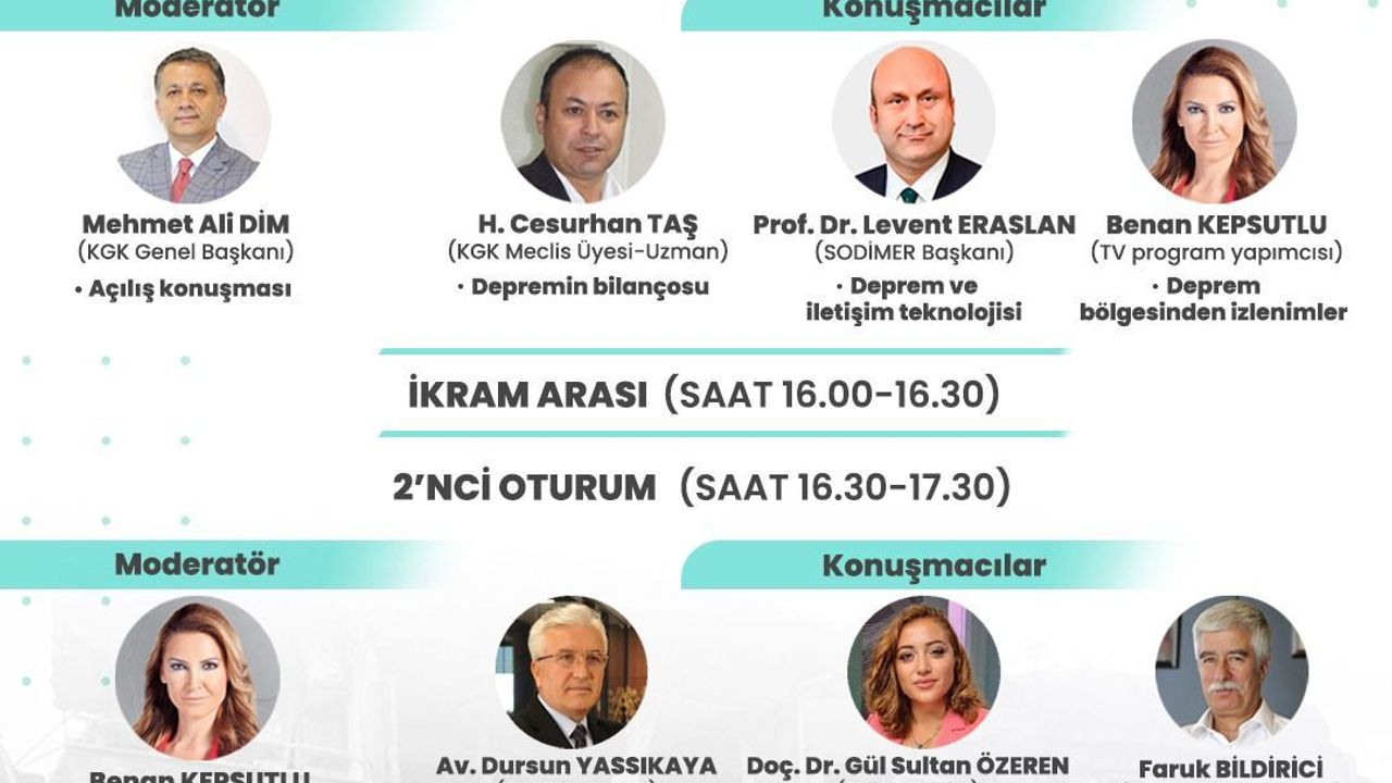 Dim'in açılış konuşmasıyla Ankara'daki Balgat, Tekstilciler Caddesi, No 17, Bayraktar Plaza, C Blok, 4. kat adresinde bulunan KGK Genel Merkezi'nde açılacak panelde KGK Meclis Üyesi olan Uzman H. Cesurhan Taş "Depremin bilançosu", SODİMER Başkanı Prof. Dr. Levent Eraslan "Deprem ve iletişim teknolojisi", TV program yapımcısı Benan Kepsutlu ise "Deprem bölgesinden izlenimler" konularını aktaracaklar.