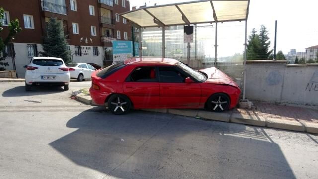 KONTROLDEN ÇIKAN ARAÇ DURAĞA ÇARPTI