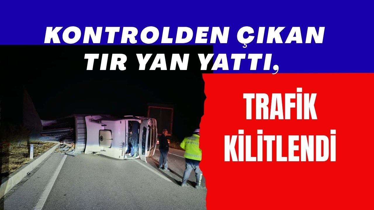 Uşak ile Afyonkarahisar arasındaki karayolunda saat 01.00 sıralarında yaşanan trafik kazası sürücülere zor anlar yaşattı. S.Ö. idaresindeki 06 DHZ 610 plakalı tır, Banaz Kızılcasöğüt Kavşağı ile Gedikler Kavşağı arasında henüz belirlenemeyen bir sebeple kontrolden çıkarak yan yattı.