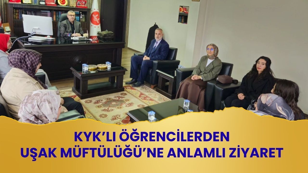 Uşak İl Müftülüğü, anlamlı bir ziyarete ev sahipliği yaptı. Uşak KYK Kız Yurdu Manevi Danışmanı ve öğrenciler, İl Müftüsü Mesut Harmancı’yı makamında ziyaret etti. Ziyaret sırasında öğrencilerle yakından ilgilenen Müftü Harmancı, gençlerle sohbet ederek onların görüş ve düşüncelerini dinledi. Samimi bir ortamda gerçekleşen buluşmada, öğrencilerin manevi gelişimine yönelik değerlendirmeler de yapıldı.