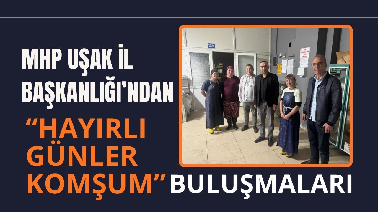 Milliyetçi Hareket Partisi (MHP) Uşak İl Başkanlığı, İl Başkanı Ümit Arslan öncülüğünde yürütülen “Hayırlı Günler Komşum” programı kapsamında kent genelinde vatandaşlarla bir araya gelmeye devam ediyor. Program çerçevesinde, MHP teşkilatı ilçelerde ve mahallelerde esnafları, haneleri ve komşuları ziyaret ederek doğrudan iletişim kuruyor.
