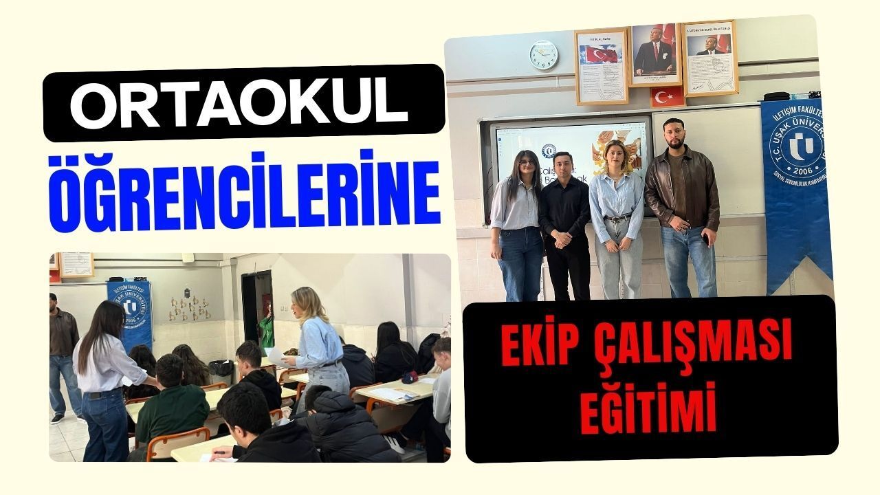 Uşak Üniversitesi İletişim Fakültesi Halkla İlişkiler ve Reklamcılık Bölümü öğrencileri Ebru Elif Taşkın, Yelda Abdan ve Samet Kaynar tarafından yürütülen sosyal sorumluluk projesi kapsamında, Bedriye ve Kadir Uysal Ortaokulu 8. sınıf öğrencilerine yönelik “Ekip Çalışması ve Ortak Karar Alma” konulu bir seminer etkinliği gerçekleştirildi.