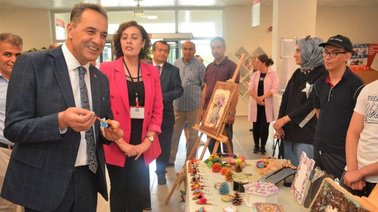 Özel gereksinimli çocuklarımızın derslerde, geri dönüşüm doğal malzemelerden üretilen, birbirinden güzel, sanat eseri mahiyetindeki ürünlerin sergisinin açılışını İl Millî Eğitim Müdürümüz Sayın Bülent Şahin gerçekleştirdi.