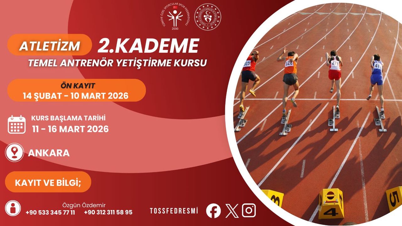 Özel Sporcular 2. Kademe Atletizm Temel Antrenör Kursu’nun tarihi ve başvuru süreci açıklandı. Program, 11-16 Mart 2026 tarihleri arasında Ankara’da gerçekleştirilecek. Başvurular 14 Şubat – 10 Mart 2026 tarihleri arasında e-Devlet Spor Bilgi Sistemi üzerinden yapılacak. Kurs ücretinin yatırılması için son tarih ise 10 Mart Salı günü olarak duyuruldu. Ücretini yatırmayan adaylar kursa katılamayacak. Mücbir sebepler dışında ücret iadesi yapılmayacağı da özellikle vurgulandı.