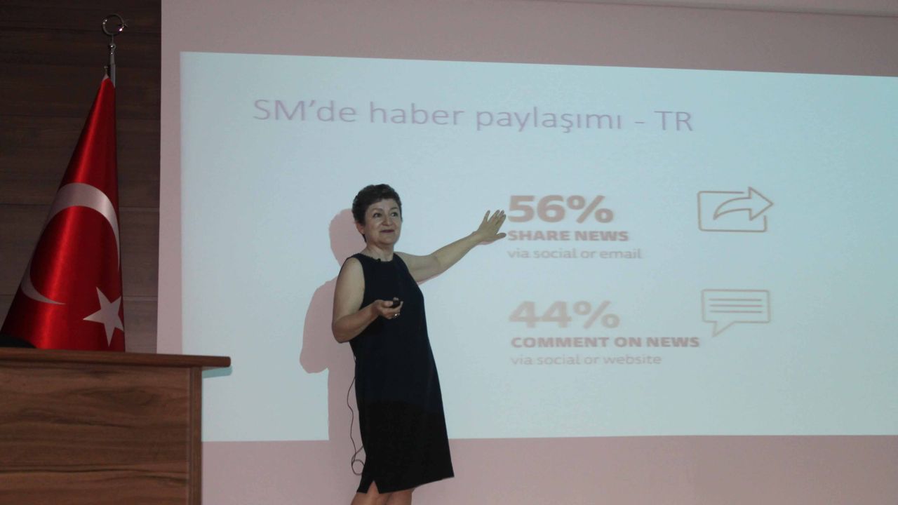 Medya ve bilgi okuryazarlığının günümüzde çok önemli bir konu olduğunu söyleyen Prof. Dr. Kurbanoğlu, tüm toplum bireylerinin medya ve bilgi okuryazarlığı becerilerine sahip olması için gerekli eğitimlerin verilmesi gerektiğini söyledi. Prof. Dr. Kurbanoğlu, “Bilgi arama davranışlarında önemli değişiklikler var. Yapılan bir araştırma, yalan haberin doğru habere göre altı kat daha hızlı yayıldığını ortaya koydu. Yalan haberin paylaşılma ihtimali doğru haberden yüzde 70 daha fazla oluyormuş, daha çok ilgi çekmek için. Bu araştırma ‘Science’ dergisinde yayınlamış bir araştırma. Yalan haber çok hızlı yayılabiliyor, Bu bizim için en önemli nokta burada. Yalan haberlerin manipülasyonuyla mücadele etmek mümkün değil mi? Elbette mümkün. Bunu yapan bazı oluşumlar da var. Biliyorsunuz doğrulama platformları, teyit platformları olarak geçiyor. İkisi aynı anlama gelen sözcükler sonuçta. Yeni medyanın olanaklarını kullanarak bir nevi içeriden mücadele örneği vererek sahte habere mücadele etmeye çalışmak gerekiyor” dedi.