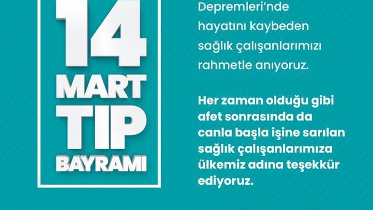 14 Mart Tıp Bayramı Kahramanmaraş Depremleri’nde hayatını kaybeden sağlık çalışanlarımızı rahmetle anıyoruz. Her zaman olduğu gibi afet sonrasında da canla başla işine sarılan sağlık çalışanlarımıza ülkemiz adına teşekkür ediyoruz. #14MartTıpBayramı