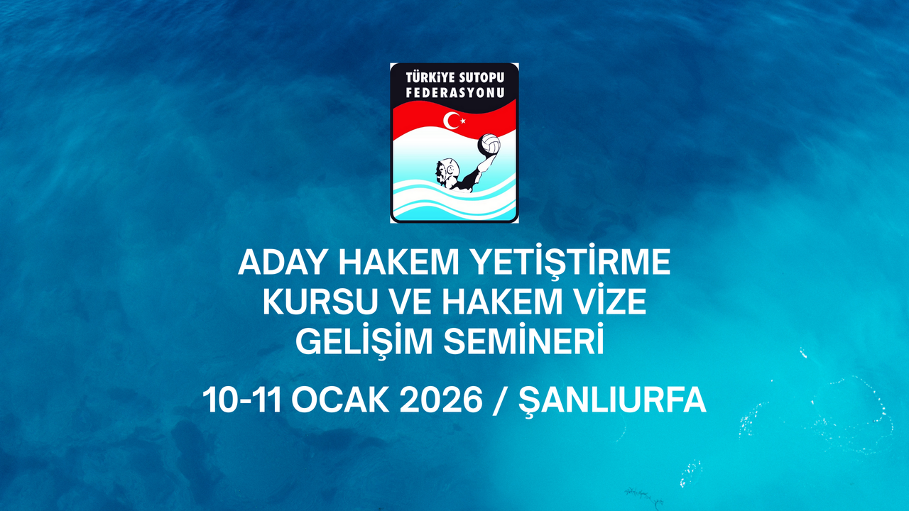 Türkiye Sutopu Federasyonu, 2025–2026 sezonu faaliyet programı kapsamında Aday Hakem Yetiştirme Kursu ve Hakem Vize Gelişim Seminerini 10–11 Ocak 2026 tarihlerinde Şanlıurfa’da düzenleyecek.