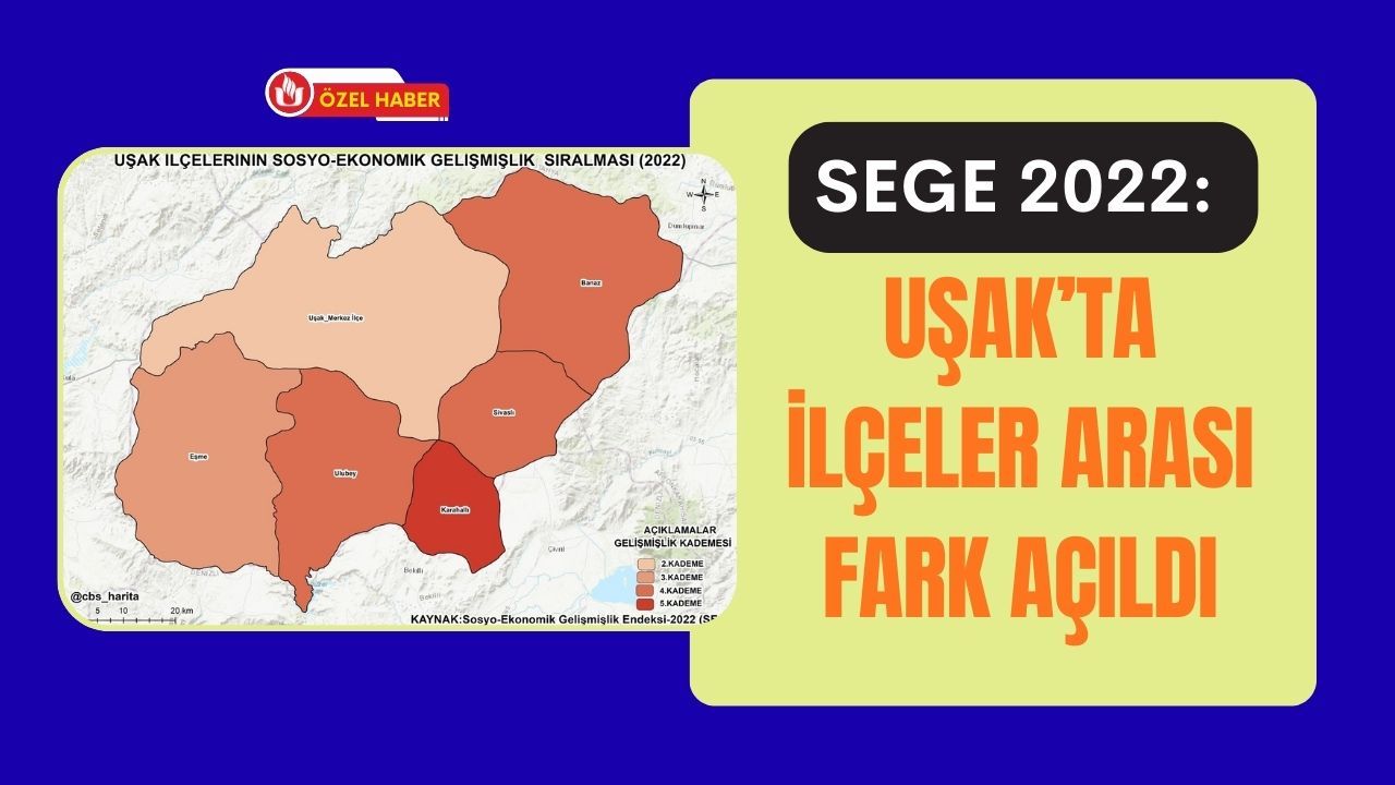 SEGE 2022 sonuçlarına göre Uşak Merkez, Türkiye genel sıralamasında 101’inci sırada ve 1,204 skorla 2. kademe gelişmişlik grubunda yer aldı. Merkez ilçenin bu konumu; organize sanayi yapısı, hizmet sektörü yoğunluğu, eğitim altyapısı ve kamu yatırımlarının etkisiyle ilişkilendiriliyor. Bu tablo, ilin ekonomik ve sosyal faaliyetlerinin büyük ölçüde merkezde toplandığını gösteriyor.