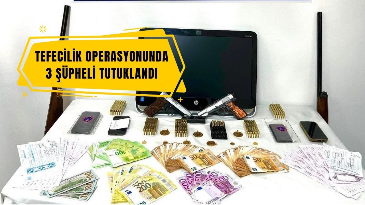 Belirlenen adreslere yapılan eş zamanlı baskınlarda 4 kişi gözaltına alındı. Aramalarda 15 milyon lira tutarında 12 senet, 37 bin 500 avro, 3 bin 250 dolar, 9 Cumhuriyet altını, 149 boş senet, 4 doküman, 2 ruhsatsız tabanca, 2 ruhsatsız av tüfeği, 443 tabanca fişeği ve 4 cep telefonu ele geçirildi.