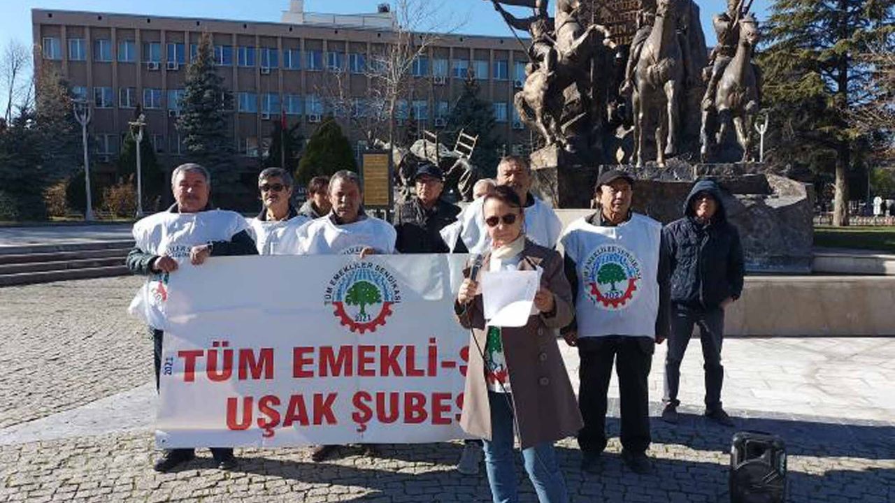 Tüm Emekliler Sendikası Uşak Şube Başkanı Ayşe Koşaroğlu, Atatürk anıtı önünde basın açıklaması yaparak hükümetin emeklilerin enflasyon altında ezdirilmemesi gerektiğini savundu.
