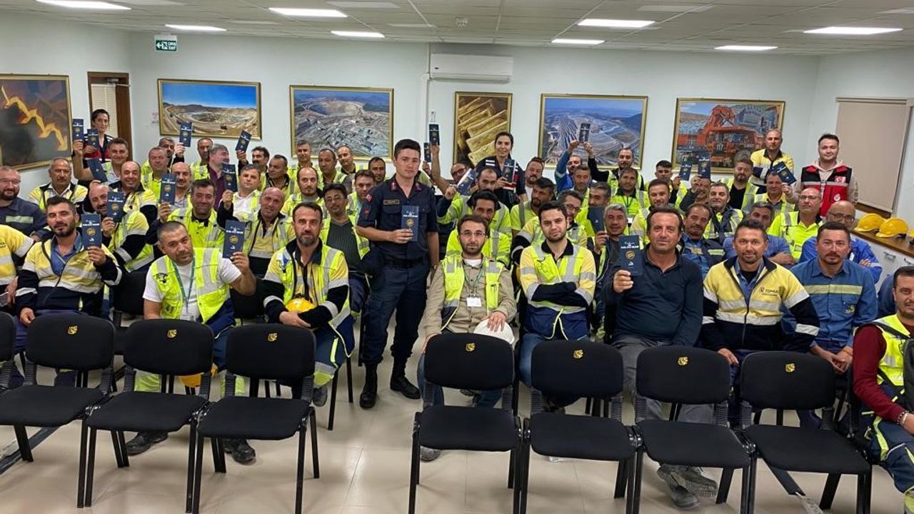 Tüprag Altın Madeni’nde çalışan toplam (89) erkek işçiye, Kadına Yönelik Şiddetle Mücadele kapsamında bilgilendirme semineri verildi. (MELİKE PANCARCI)