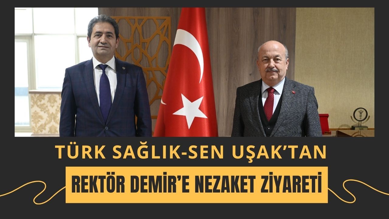 Türk Sağlık-Sen Uşak Şubesi, Uşak Üniversitesi Rektörü Prof. Dr. Ahmet Demir’e hayırlı olsun ziyaretinde bulundu. Şube Başkanı Mehmet Özkuk’un öncülüğündeki heyet, rektörlük makamında gerçekleşen buluşmada yeni görev dönemine ilişkin temennilerini paylaştı.