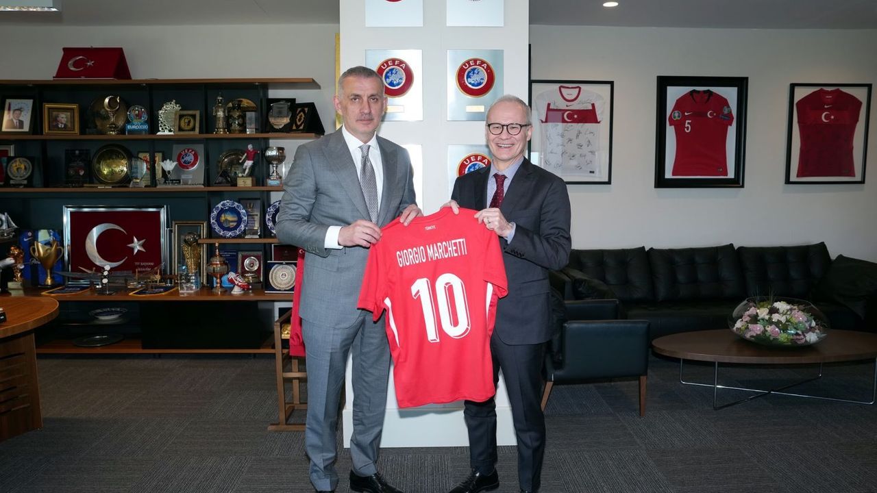 Ziyaretin ardından TFF Başkanı İbrahim Ethem Hacıosmanoğlu, UEFA Genel Sekreter Yardımcısı Giorgio Marchetti’ye üzerinde isminin yazılı olduğu A Millî Takım forması hediye etti. Samimi bir atmosferde gerçekleşen görüşme, günün anısına çekilen hatıra fotoğraflarıyla sona erdi. (TFF)