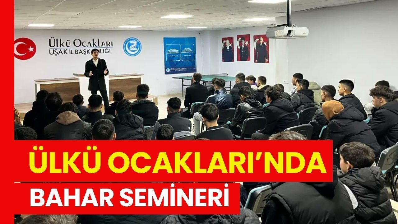 Ülkü Ocakları Uşak İl Başkanlığı tarafından düzenlenen “Bahar Dönemi Eğitim Seminerleri” bu hafta da yoğun katılımla gerçekleştirildi. Program kapsamında gençlere yönelik ideolojik ve toplumsal içerikli başlıklar ele alındı. Seminerde, Kızıl Elma ve İlay-i Kelimetullah kavramlarının tarihsel ve düşünsel arka planı üzerinde duruldu. Katılımcılara bu kavramların Türk-İslam düşüncesindeki yeri ve anlamı aktarıldı.